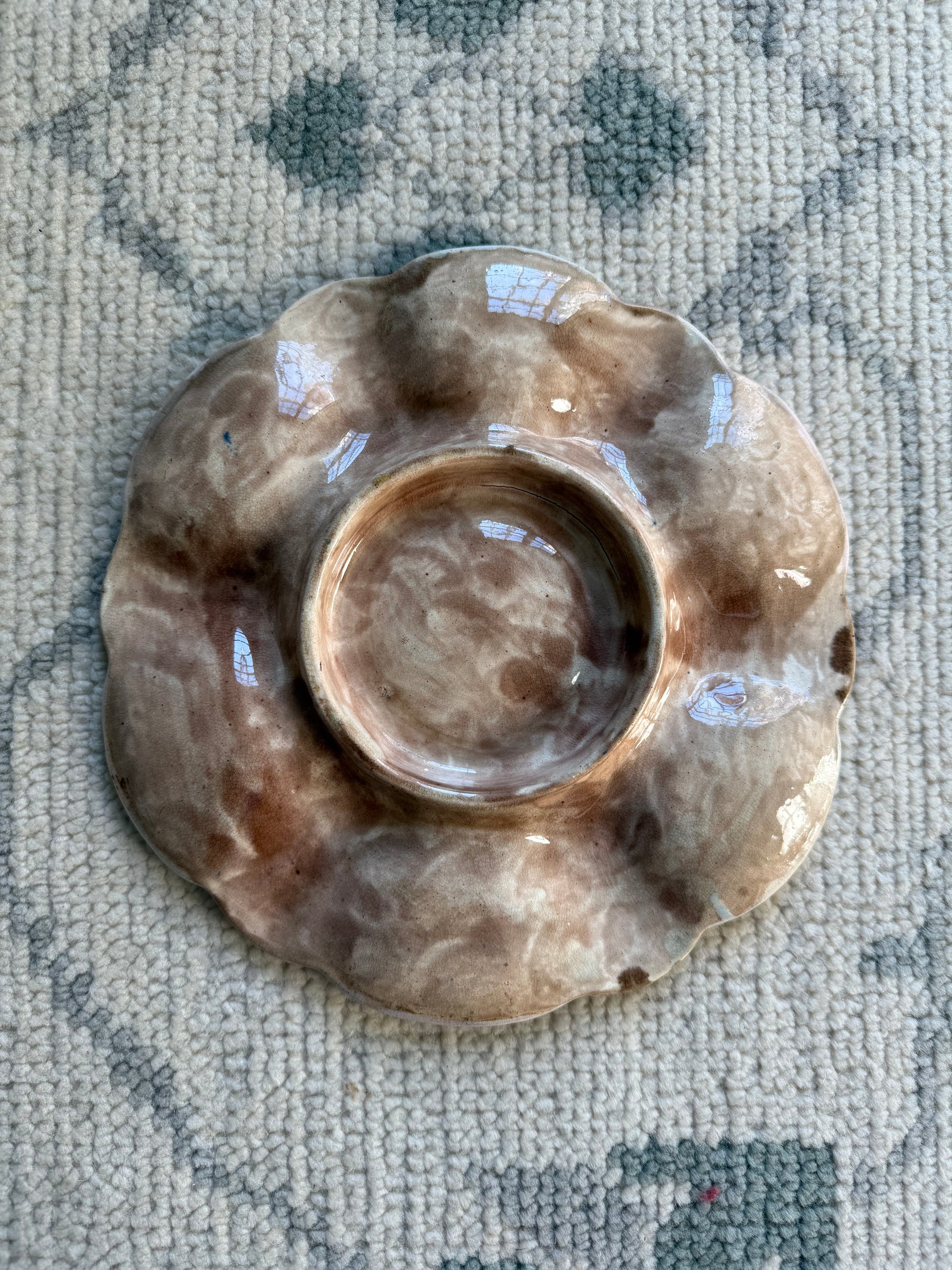 Circa 1890. Beautiful, deep teal center well and scallop and cone snail shells throughout. Measures appx 9.5” in diameter. Excellent condition, no chips or cracks.