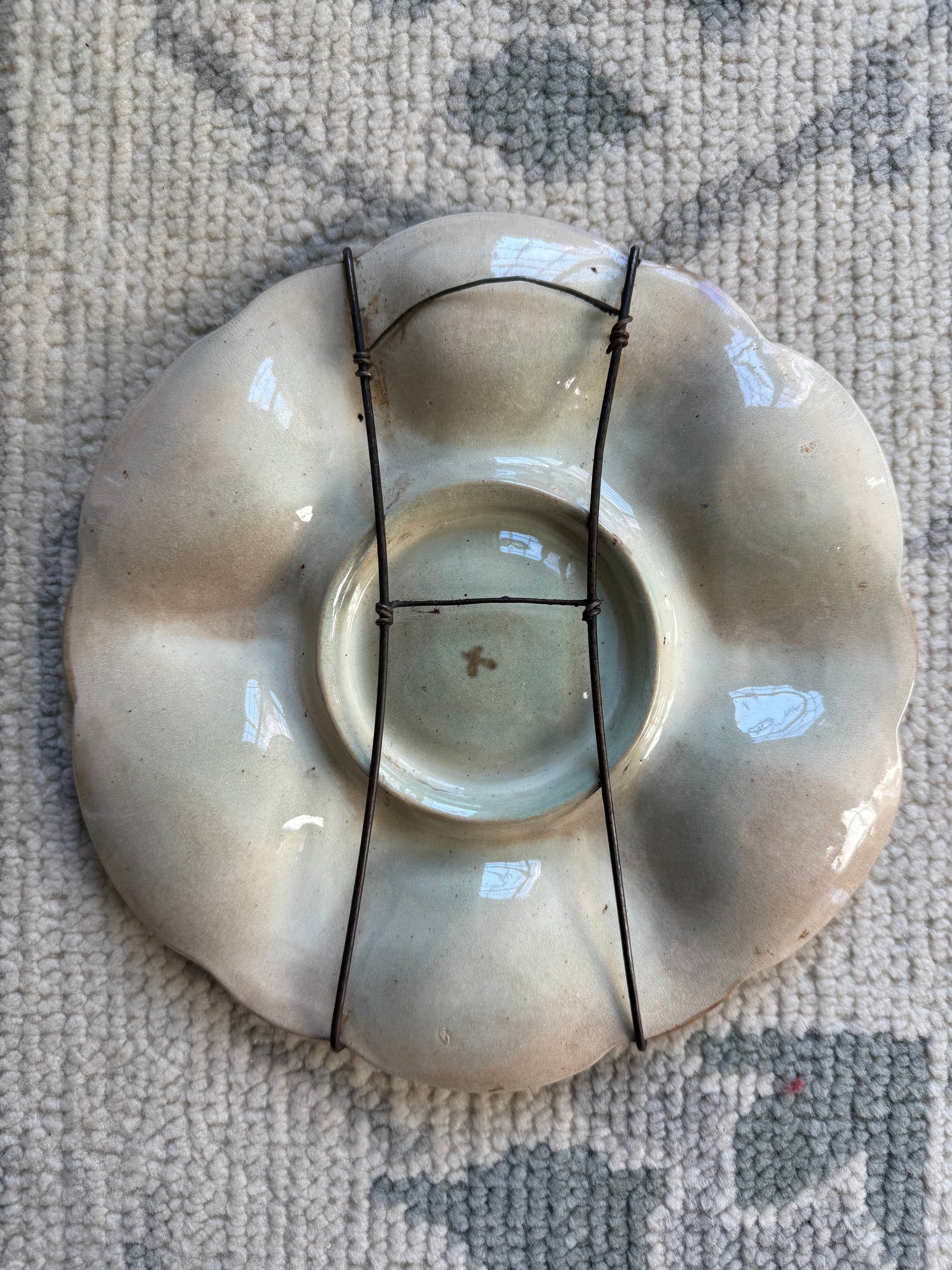 Circa 1890. Beautiful, deep teal center well and scallop and cone snail shells throughout. Measures appx 9.5” in diameter. Excellent condition, no chips or cracks.