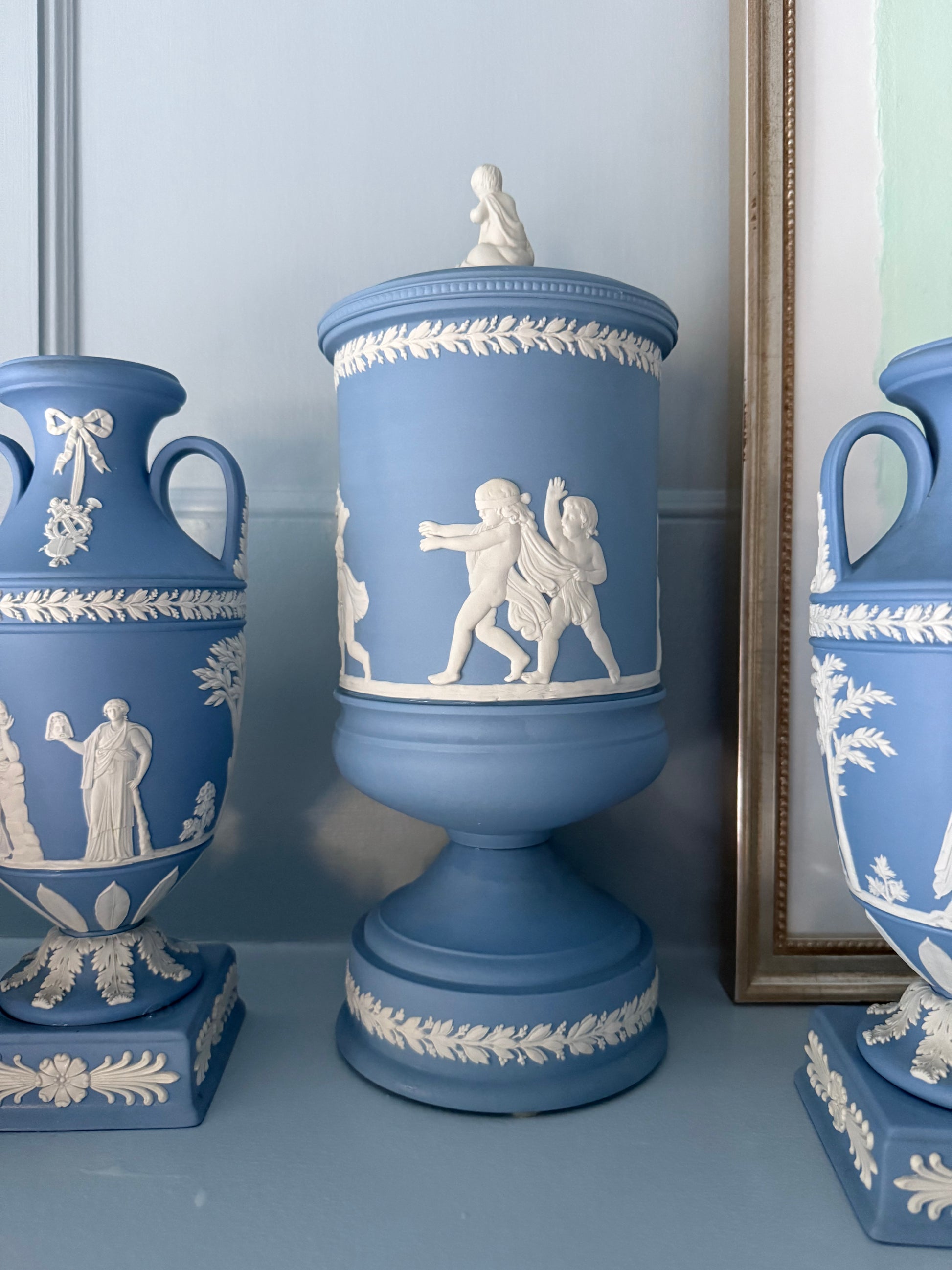 Wedgwood Jasperware Cream on Lavender Lidded Urn with Cherubs